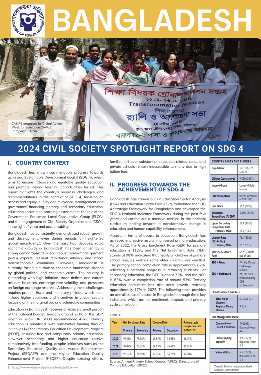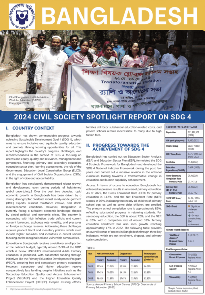 Bangladesh – Civil Society Spotlight Report on SDG 4 for HLPF 2024