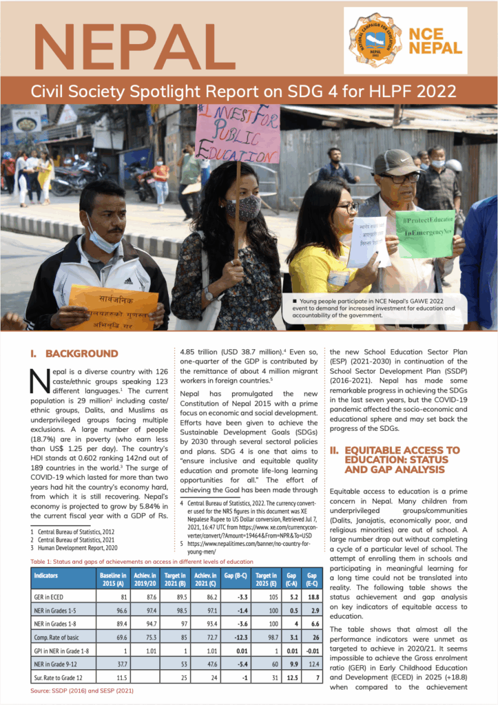 Nepal – Civil Society Spotlight Report on SDG 4 for HLPF 2022