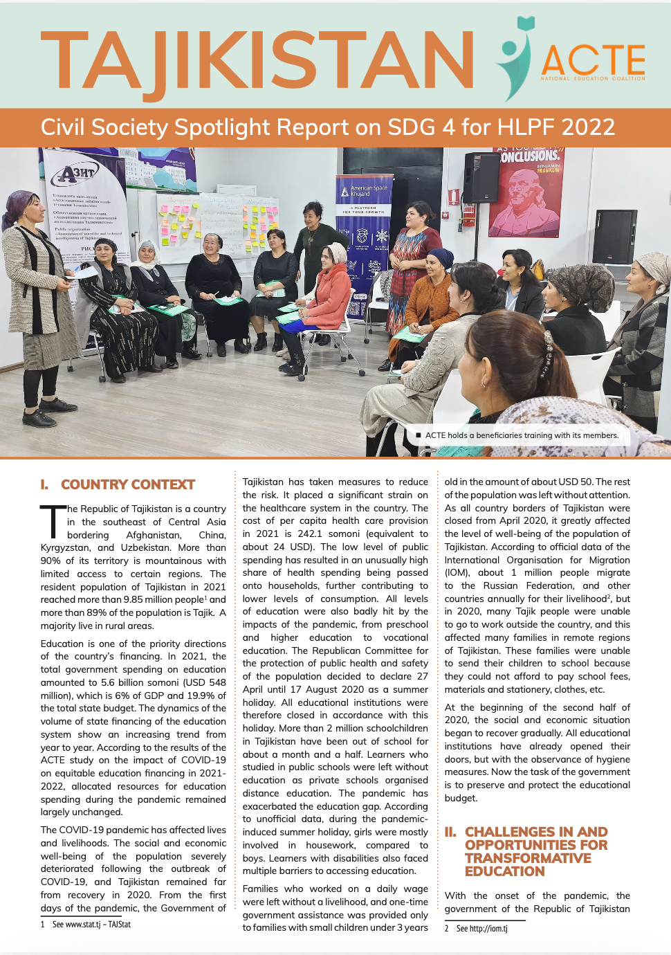 Tajikistan – Civil Society Spotlight Report on SDG 4 for HLPF 2022
